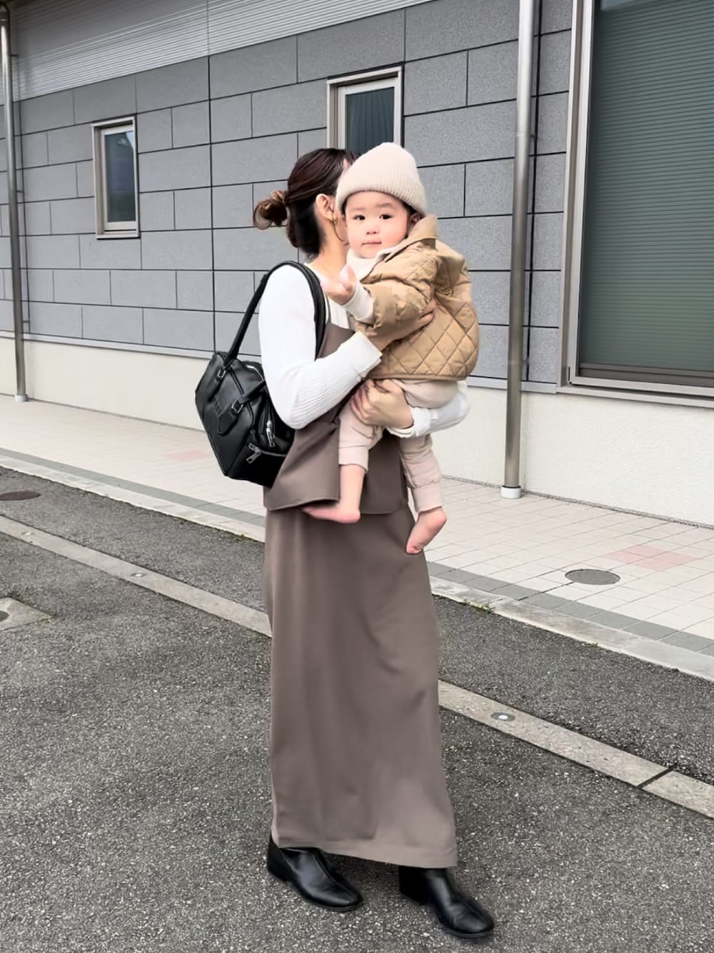 chicchimoのワンピース「【S・Mサイズ展開】【マタニティ】【イージーケア】イージージョーゼットペプラムキャミワンピース」を使ったコーディネート