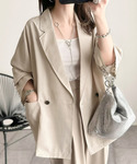 chicchimoのテーラードジャケット「さらりと羽織る、大人の余裕。麻調シアー素材ドルマンスリーブオーバーサイズダブルテーラードジャケット(長袖)」を使ったコーディネート