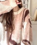 chicchimoのニット/セーター「1枚で映える主役級。 ウェーブ柄 ダブル ジャガード シャギー ニット オーバーサイズプルオーバー」を使ったコーディネート