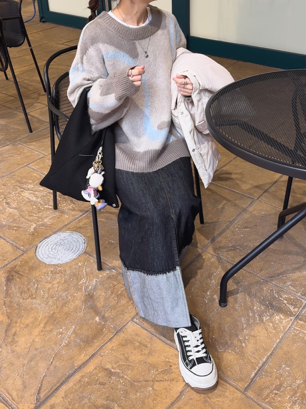 chicchimoのニット/セーター「1枚で映える主役級。ウェーブ柄ダブルジャガードシャギーニット オーバーサイズ プルオーバー」を使ったコーディネート