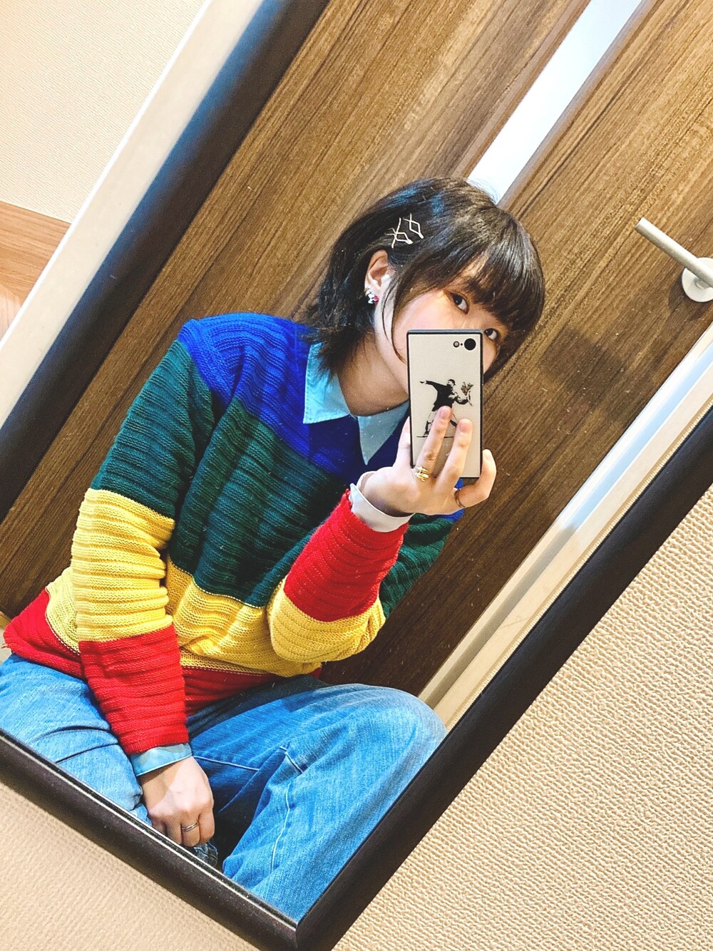カラフルなニット。 座って撮るのにハマったので、これから暫く座り画が続きます。 すみませんが暫くお付き合い下さい。