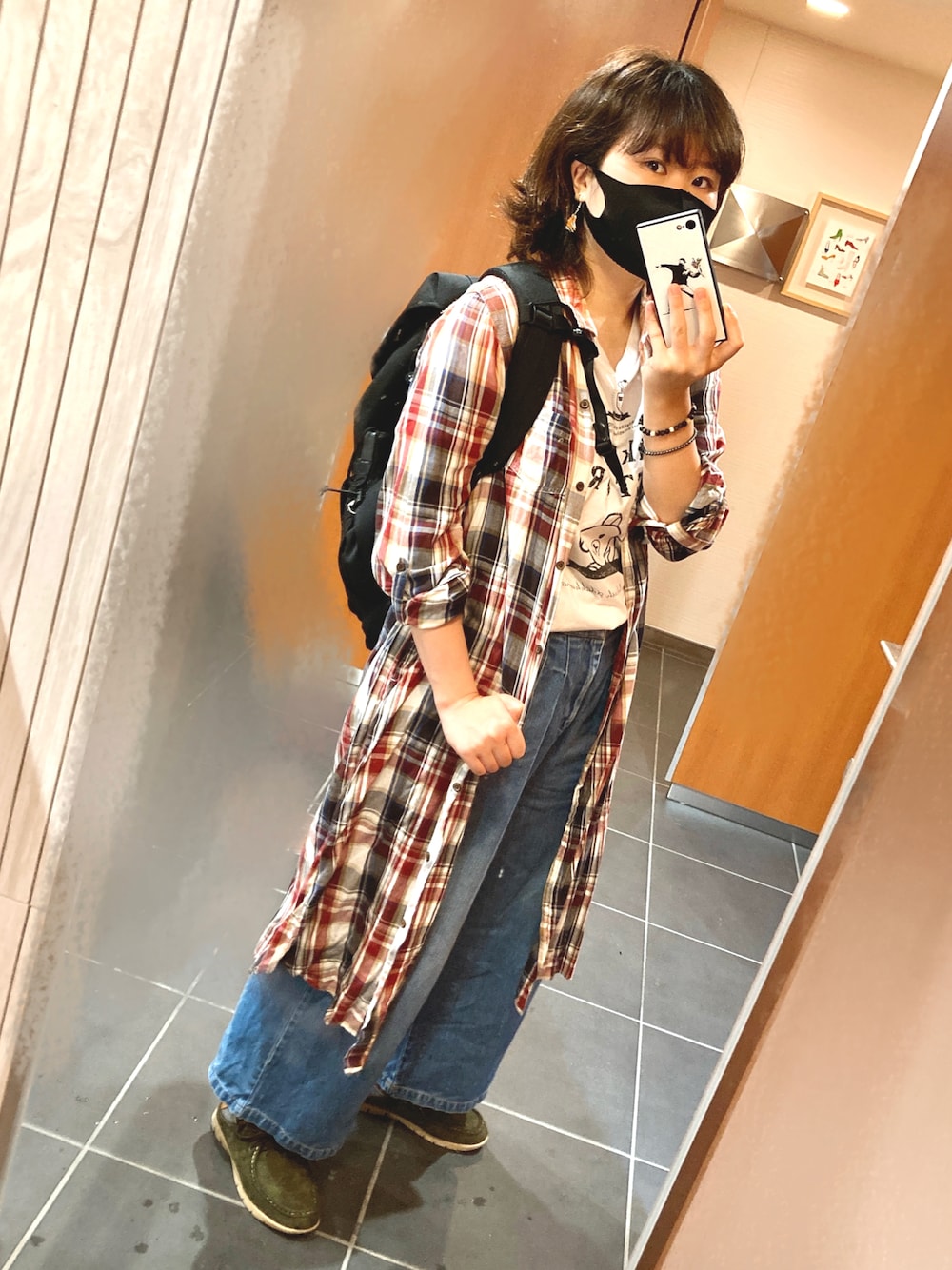 ナチュラルカジュアルというか。 Tシャツはキャラもの。 リラックマが描いてあります。(高校の時に友人とお揃いで買った)