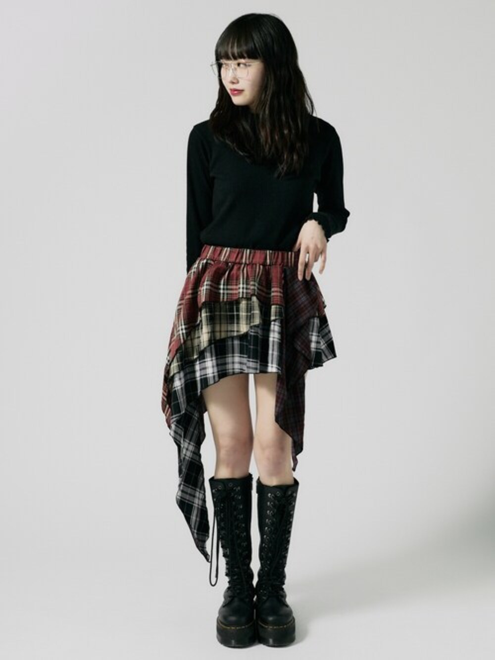 chickofficial(ROOPTOKYO)のスカート「Check Layered Skirt / チェックレイヤードスカート」を使ったコーディネート