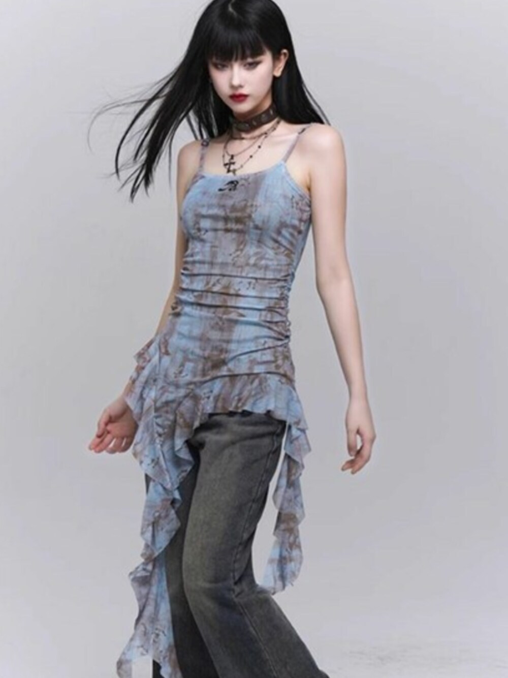 トレンド感のあるシアー素材を採用したキャミソール! ●フロント部分には、メタルバッチでRとデザインされています。 ●花柄のシアー素材を採用しており、 トレンド感のあるデザインとなっています。 ●アシンメトリーな裾がポイントで エレガントな雰囲気を演出してくれます。 ●ストラップはサイズ調整可能となっています。