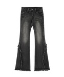 クラッシュ加工を施したフレアデニムパンツ! 【ポイント】 ●クラッシュデザインが施されており、 さりげないアクセントになります。 ●前面に強めのヒゲ加工と色落ち加工が 入っており、ヴィンテージライクな仕上がりに! ●フレアパンツなため、大人っぽい印象を与えてくれます。