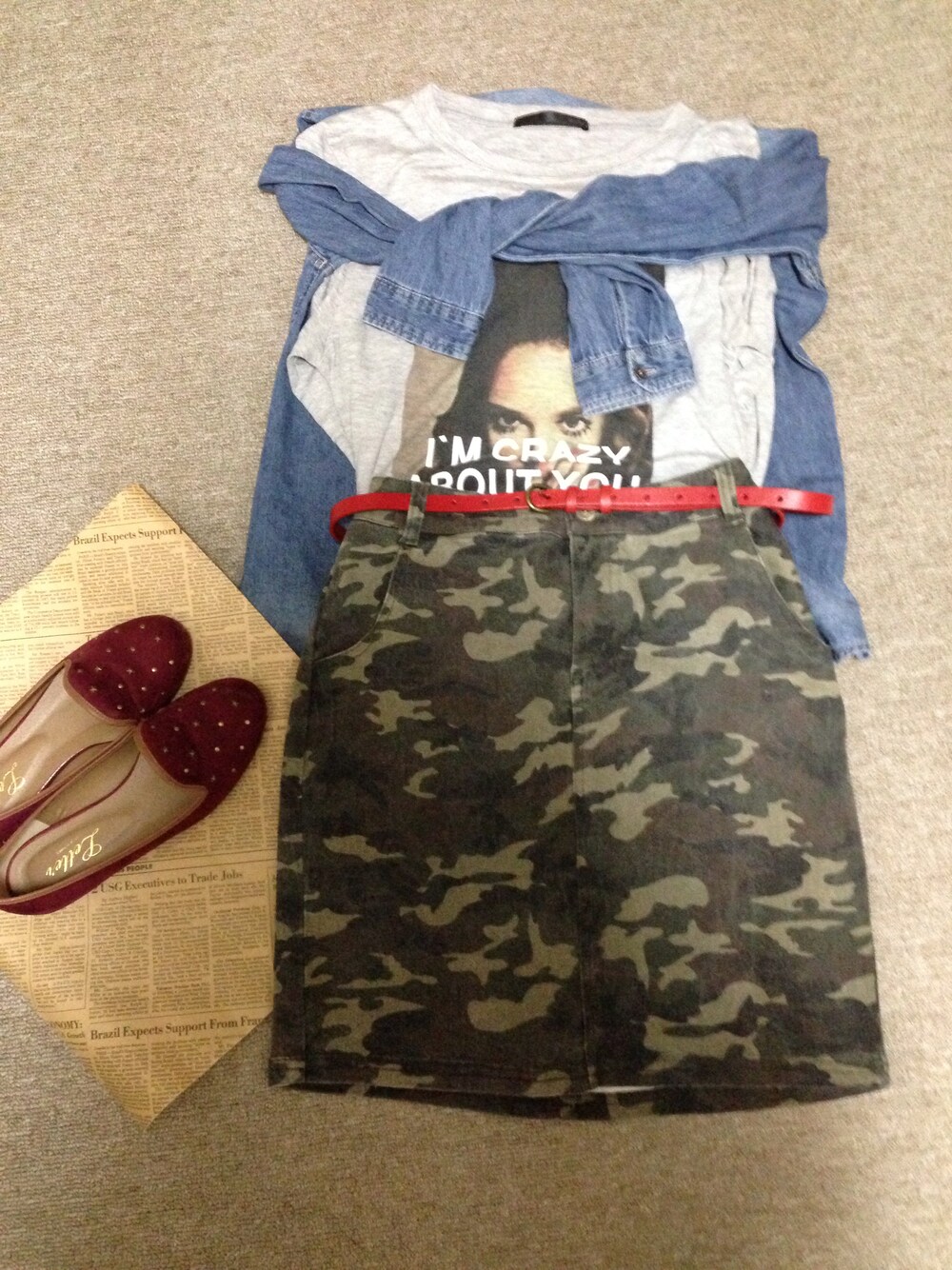 明日の学校コーデ 風が冷たかったらストッキングはきます ボルドーのフラットシューズ¥999 お気に入り。