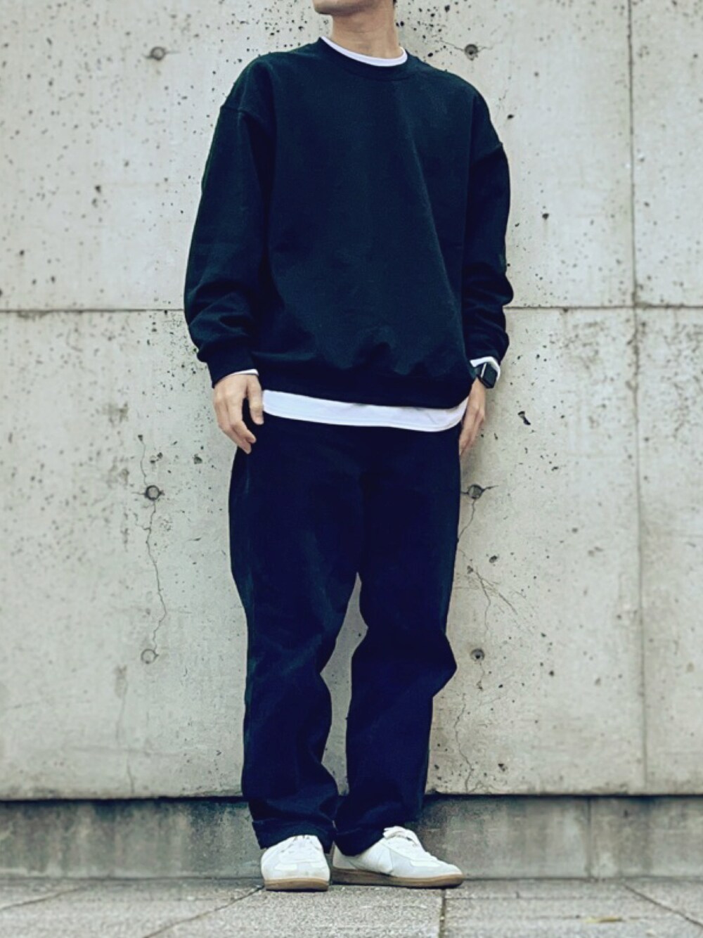 ギルダンのスウェットを着回します。2コーデ目はモノトーンにまとめました。