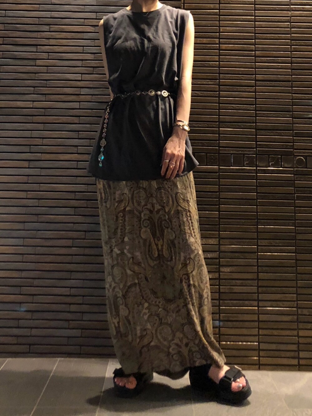 スミクロのトップスは重たくならず 程よい抜け感が出て好きです(^^) kastaneのベルトは3型あって どれも可愛くて悩みましたが こちらにしました(´ `)