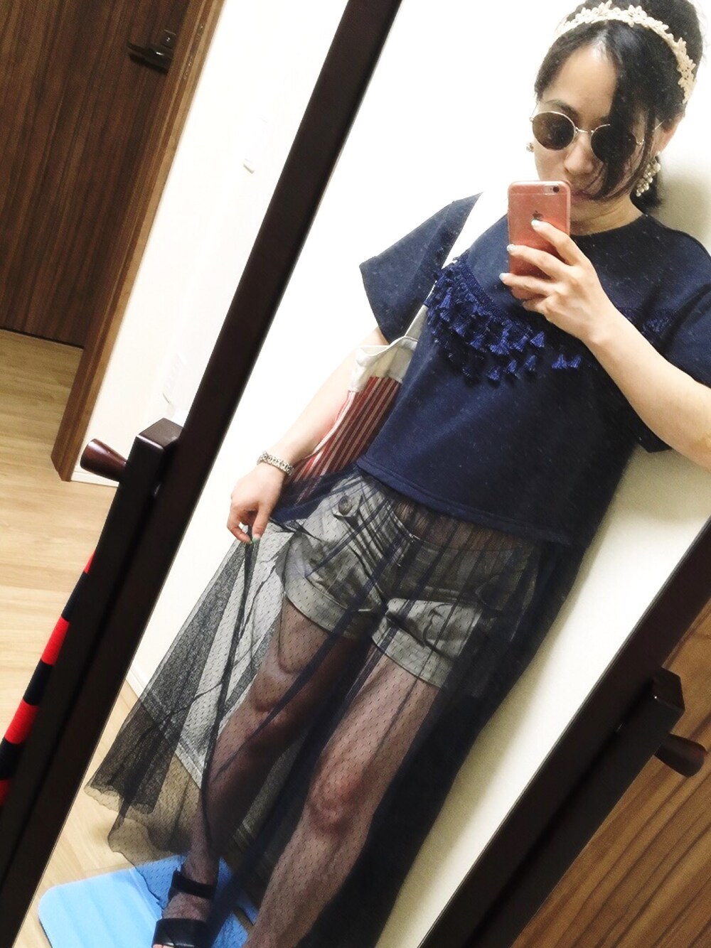 chico22のワンピース「チュール切り替えワンピース」を使ったコーディネート