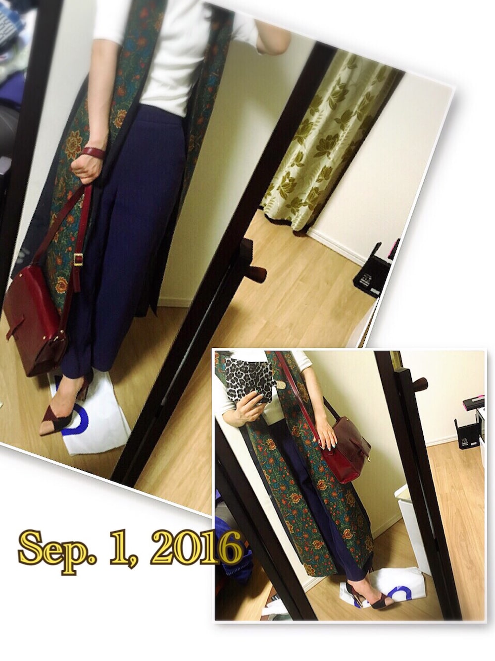ご覧下さる皆さま、ありがとうございますm(_ _)m さて。懲りることなく、本日も秋モード。主役になるロングジレから、赤系色をピックアップして→バッグと靴でレッド、ワイン色系をリンクさせました。昨日のコーデに引き続き…休みの日ならつば広のハットもかぶれるのに!!という、ちょっぴり我慢してるコーデです😣💦笑。 日中はまだまだ暑いですが、9月にも入ったし、少しずつでも、気候に合わせて秋モノをおろしていけたら嬉しいなと思っておりますので、少し興味持って頂ける方はどうぞお付合いの程をよろしくお願い致しますデス(^◇^;)