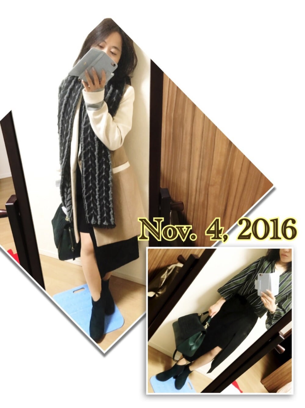 ご覧下さる方、いつもありがとうございますm(_ _)m さて。今日はディープグリーンがメインカラーのコーデです。一色でそれなりにインパクトのあるカラーなので、合わせる色を黒など強め色だけで固めちゃって重たーくなってしまわないように、コートはベージュ、ホワイト系のチェスターコートで強め色を中和してます。コートはイタリアのインポートで昨年購入したものです。日本ではお目にかからない独特のデザインがお気に入りです♡今年も活躍させたいと思います♪ では、お休みなさい💤😴💤