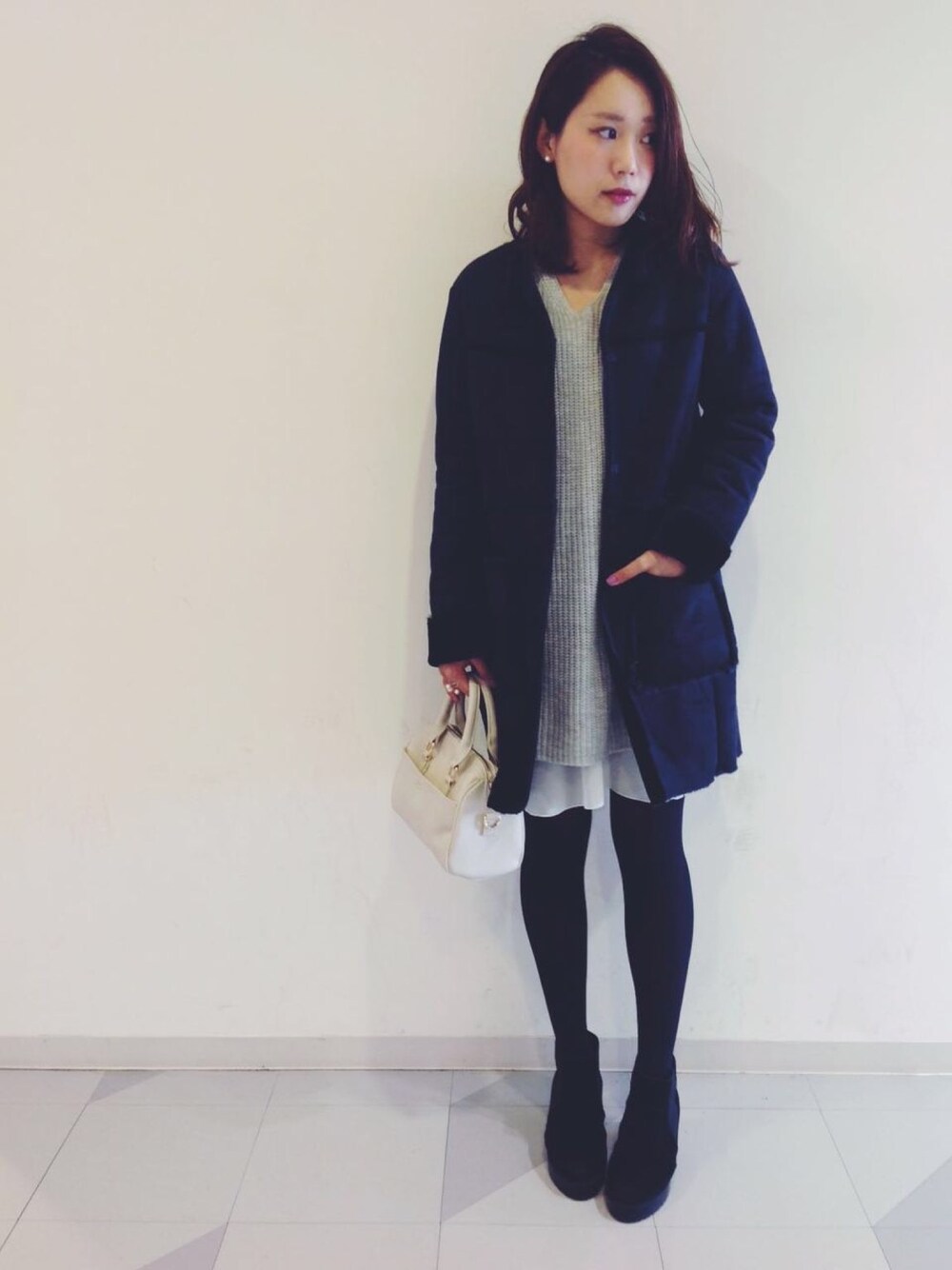 暖かムートン♡ ネイビーカラーをチョイスすれば一気に大人っぽくなれます。