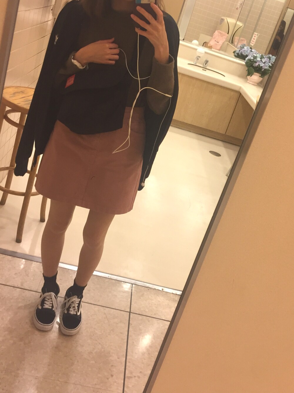 プチプラ〜〜 gogosingとってもすき!かわいい! スカートSなかったからMにしたけどやっぱりおっきい😂 寒かったからアディダスのジャージ羽織った👌