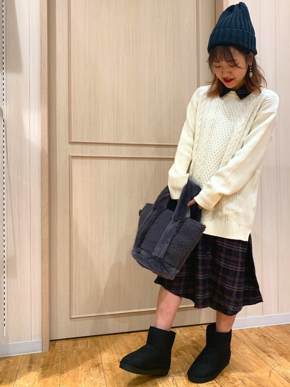 ご覧いただきありがとうございます❤️ シャツワンピにニットを重ねて着てみました😋 ニットはお尻が隠れる長さでちょうどいい感じです🧚🏻♀️