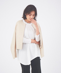 カーディガン感覚で着られるブルゾンに合わせてコーディネートしました。オレンジ色のパンツは細身のシルエットですがストレッチ性がありとっても履き心地が良いアイテム。ブルゾンから見えるアシンメトリーカットソーが◎