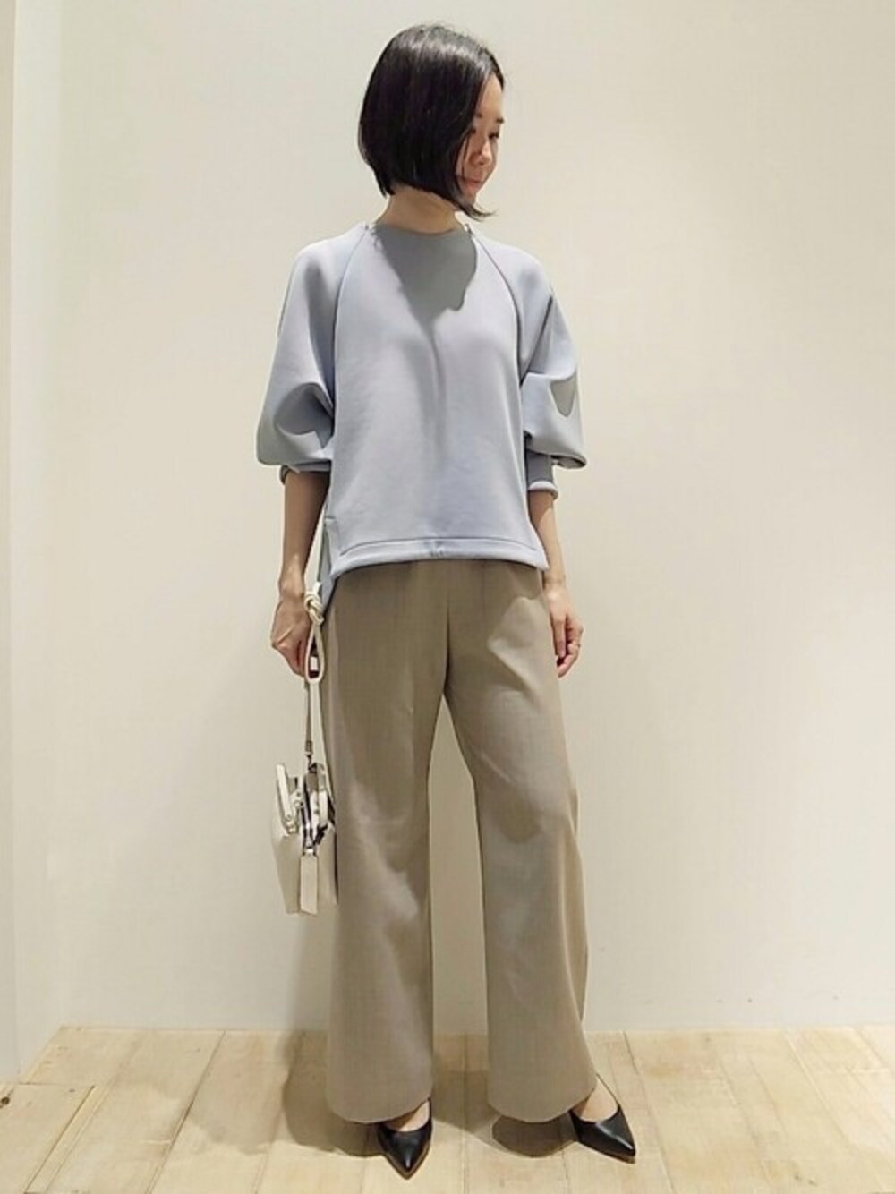 立体的なフォルムでお召し頂けるカットソーに、セミフレアパンツを合わせました!モチッとした柔らかい生地感がとても着心地の良いカットソーです。