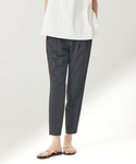 スリムなシルエットのストレッチテーパードパンツに、透け感のあるオーガンジーシャツを合わせました!やわらかなパープルカラーをポイントカラーに、羽織りで色をプラスしました。