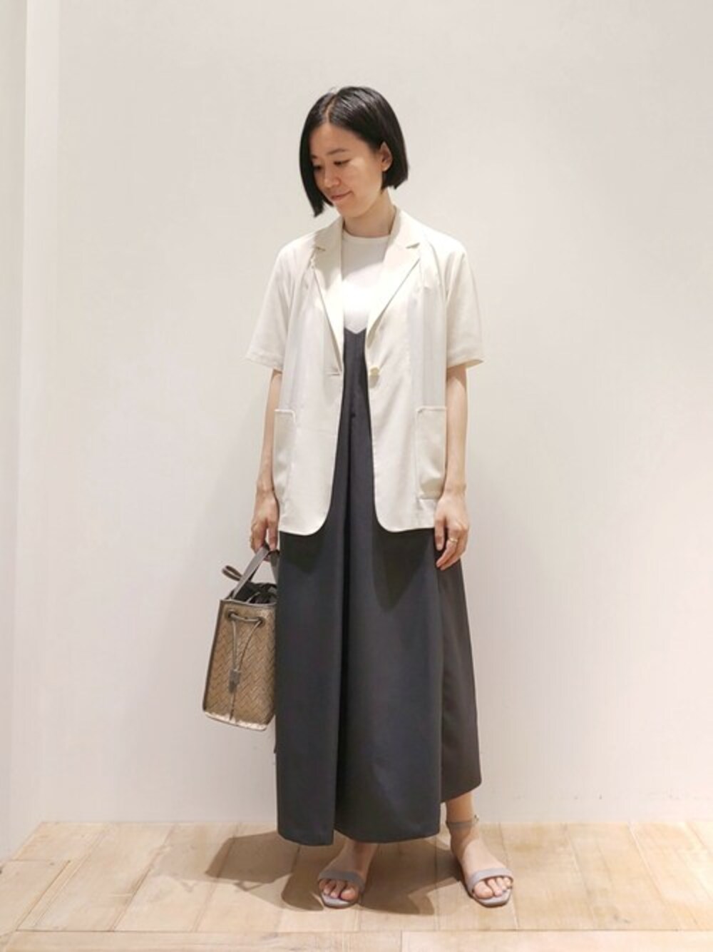 今年オススメの気軽に羽織れる半袖ジャケット!ロングワンピースと合わせてもバランス良く合わせられます。お仕事にプライベートに大活躍!