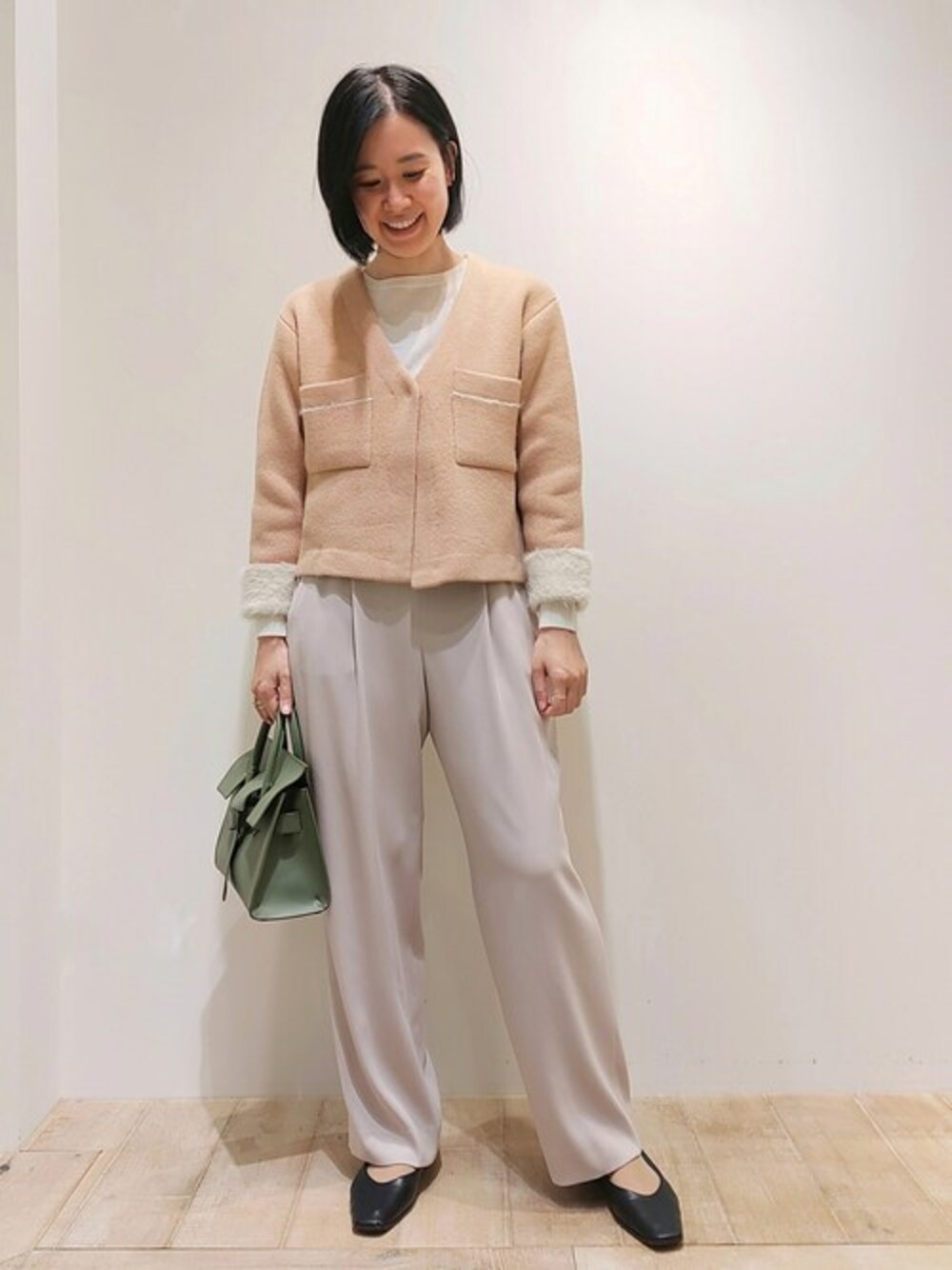 Chie(メゾン カリテ 新宿高島屋店)のブルゾン「フェザー接結ニットブルゾン」を使ったコーディネート