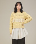 かぎ針の手編みフリンジニット。 コーディネートの主役になるデザインで、ざっくりした雰囲気が冬のスタイリングにぴったりです。