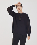 ラメ感のある生地で、上品な雰囲気のあるニット。 シンプルながらもシアーな袖がポイントの着映えするデザインです!