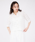 シアー感のあるチェックニットに、デニムパンツを合わせたコーディネート! ニットはドライタッチで夏は羽織りでも活躍します。