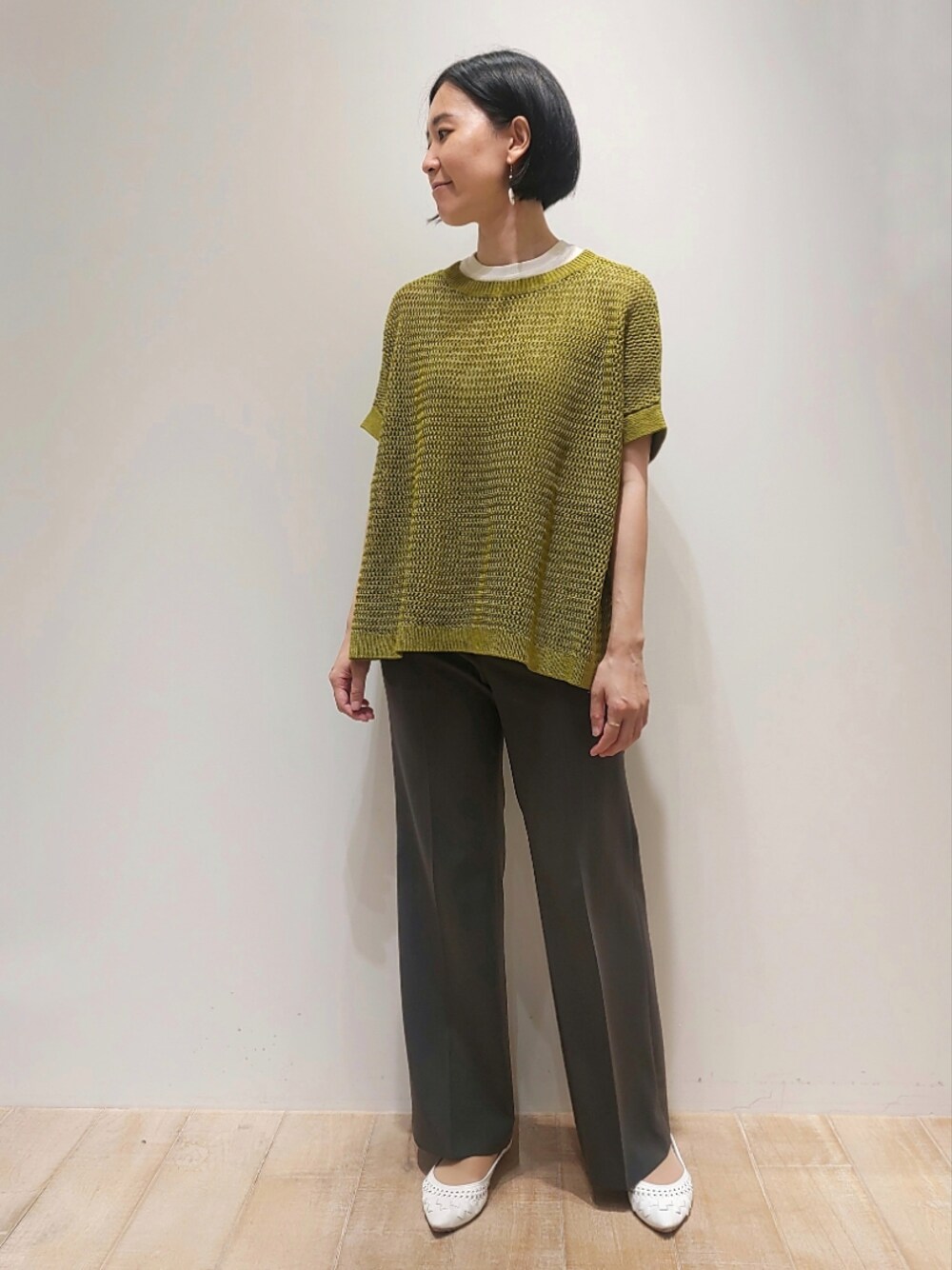 Chie(メゾン カリテ 新宿高島屋店)のニット/セーター「メッシュコットンスクエアニット」を使ったコーディネート