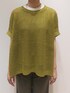 くすみマスタードカラーのメッシュニット! インナーに白のカットソーをレイヤード。 いち早く秋色を取り入れたコーディネートです。