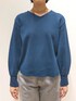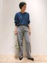 シンプルカラーニットコーデ。 肉厚のニットはシンプルながらも、ダークトーンのブルーカラーでポイントになる色合いです。