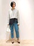 ショート丈のカラーミックスニットをカットソーとレイヤードし、インディゴのデニムで合わせたカジュアルスタイル。 たくさんのカラーが入っているニットです!