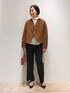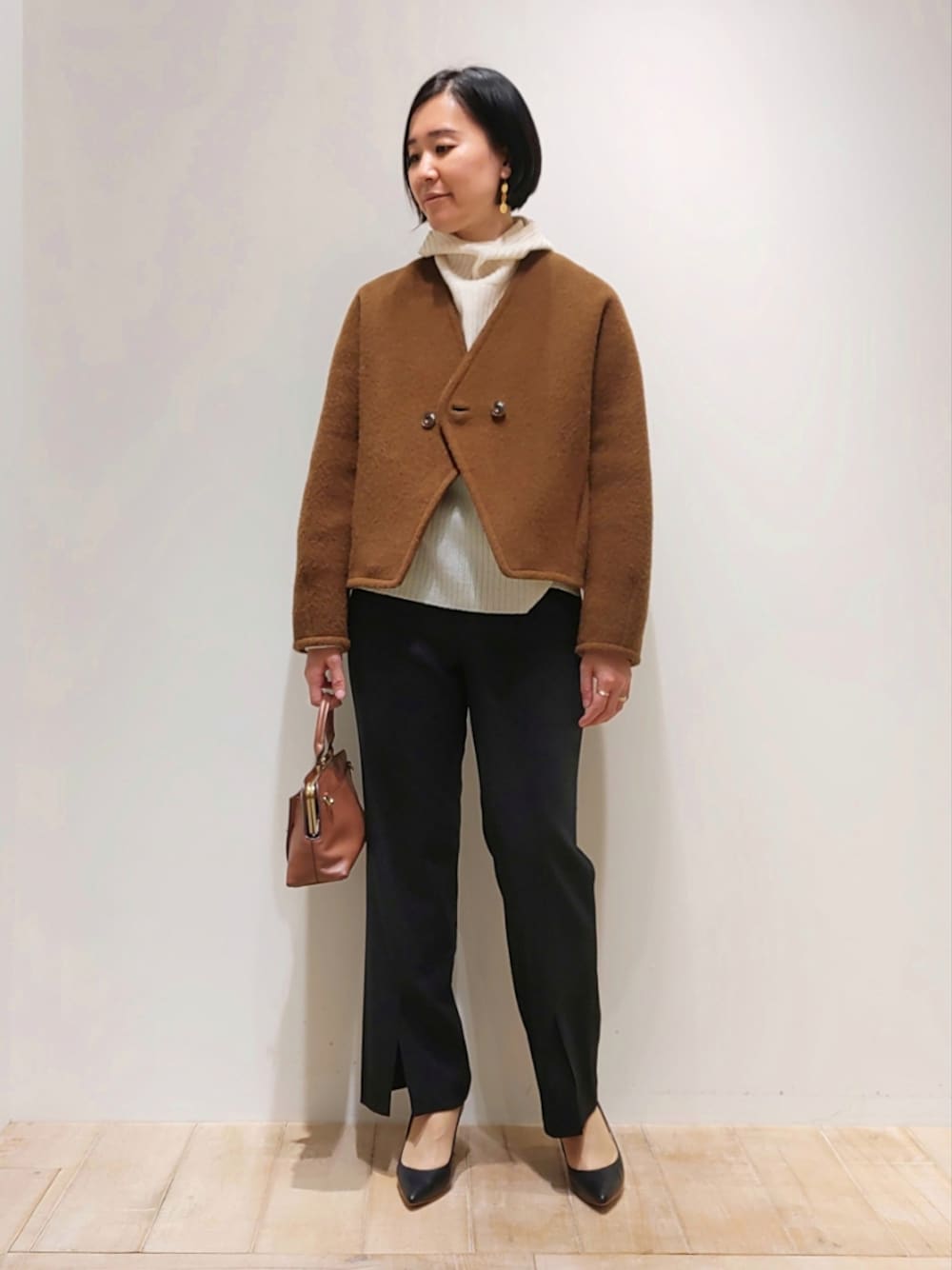 Chie(メゾン カリテ 新宿高島屋店)のノーカラーコート「モヘアシャギーショートーコート/コーディガン/シャギーコート」を使ったコーディネート