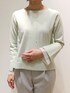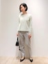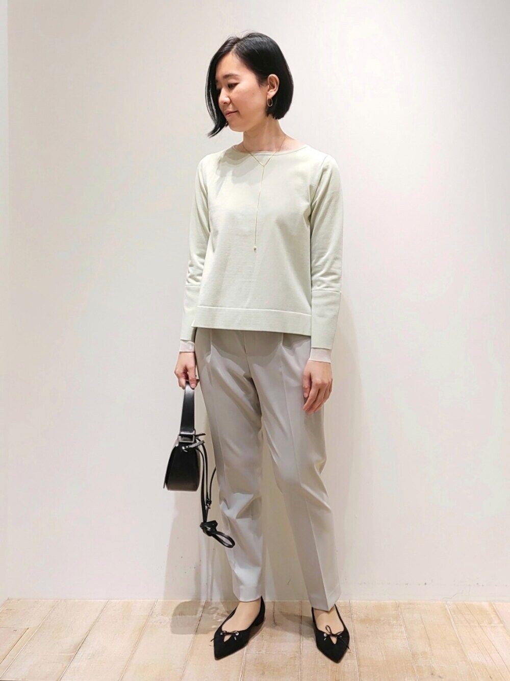 淡いグリーンカラーが春らしいニット! ハイゲージのフレアニットをシンプルに合わせました✨