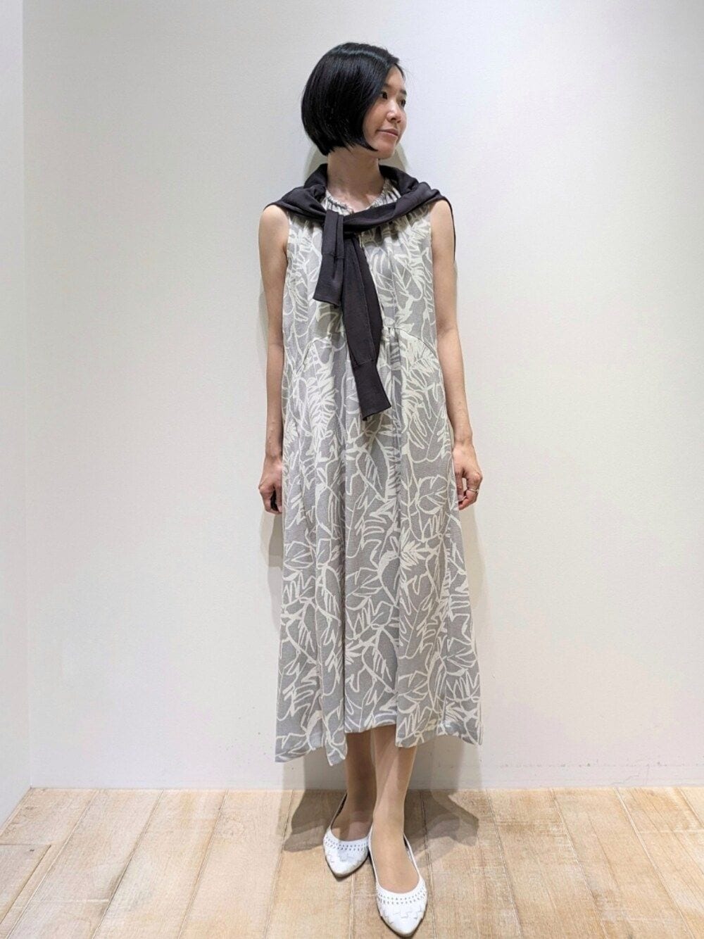 いつもご覧いただきありがとうございます! ボタニカル柄ワンピース! 淡い色で他のアイテムと合わせやすいです。 リネンライクで作っていて涼しくしわになりにくい素材感。