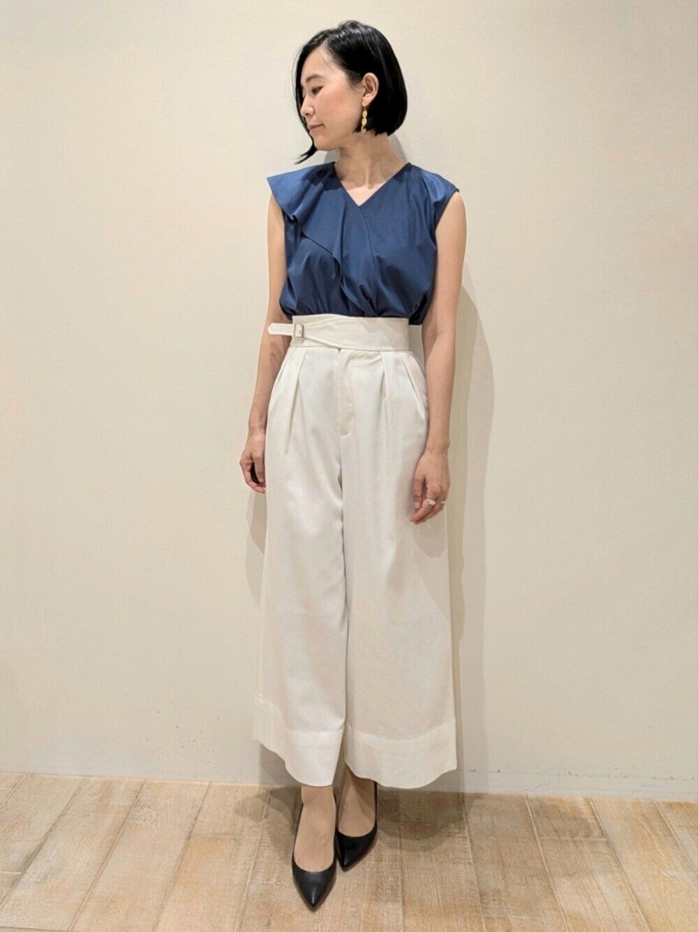 いつもご覧いただきありがとうございます! フェミニンなパンツスタイル。 フリルカットソーでボリュームを出し華やかにまとめました!