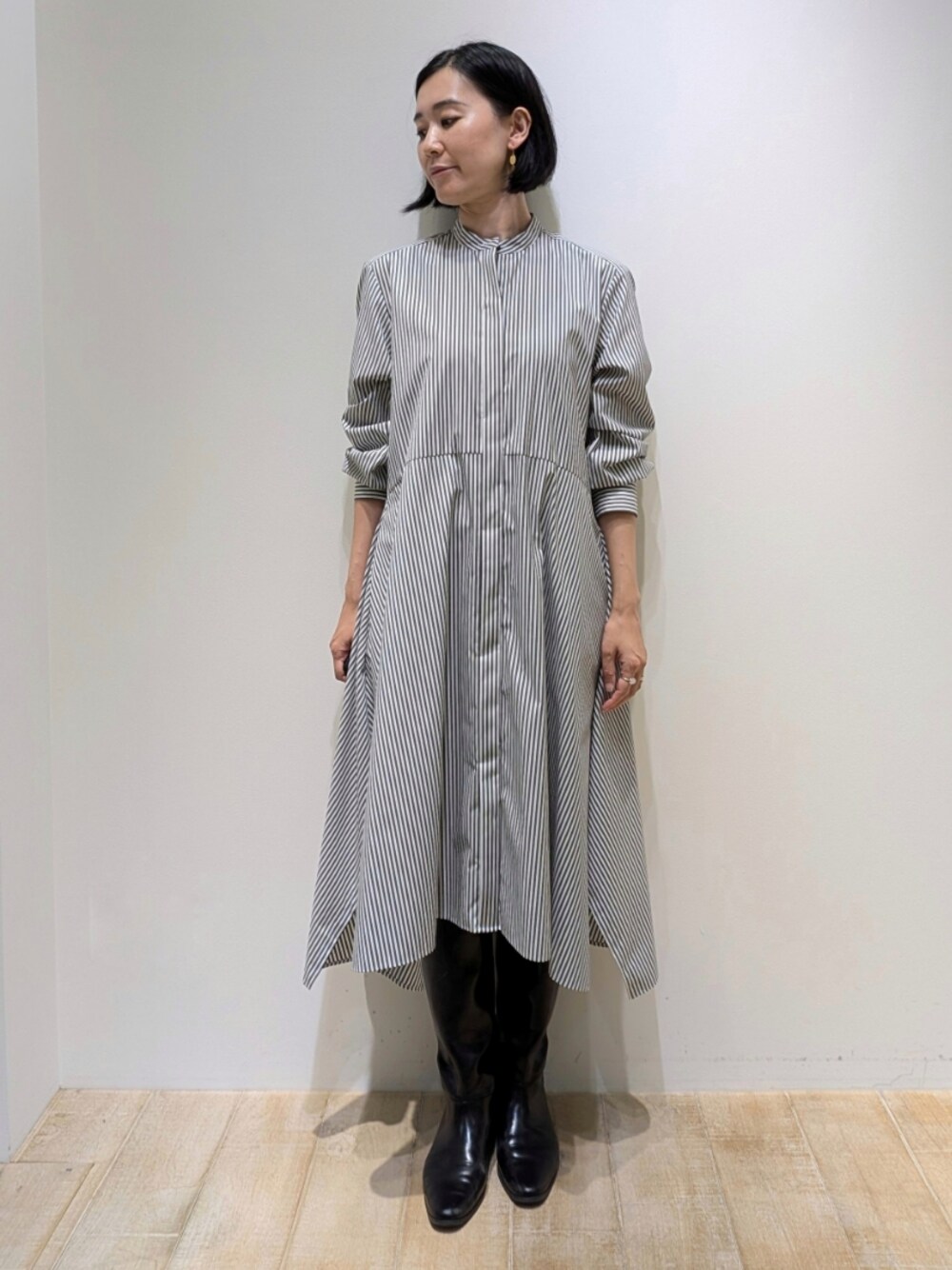 Chie(メゾン カリテ 新宿高島屋店)のワンピース「イレギュラーヘムシャツワンピース」を使ったコーディネート