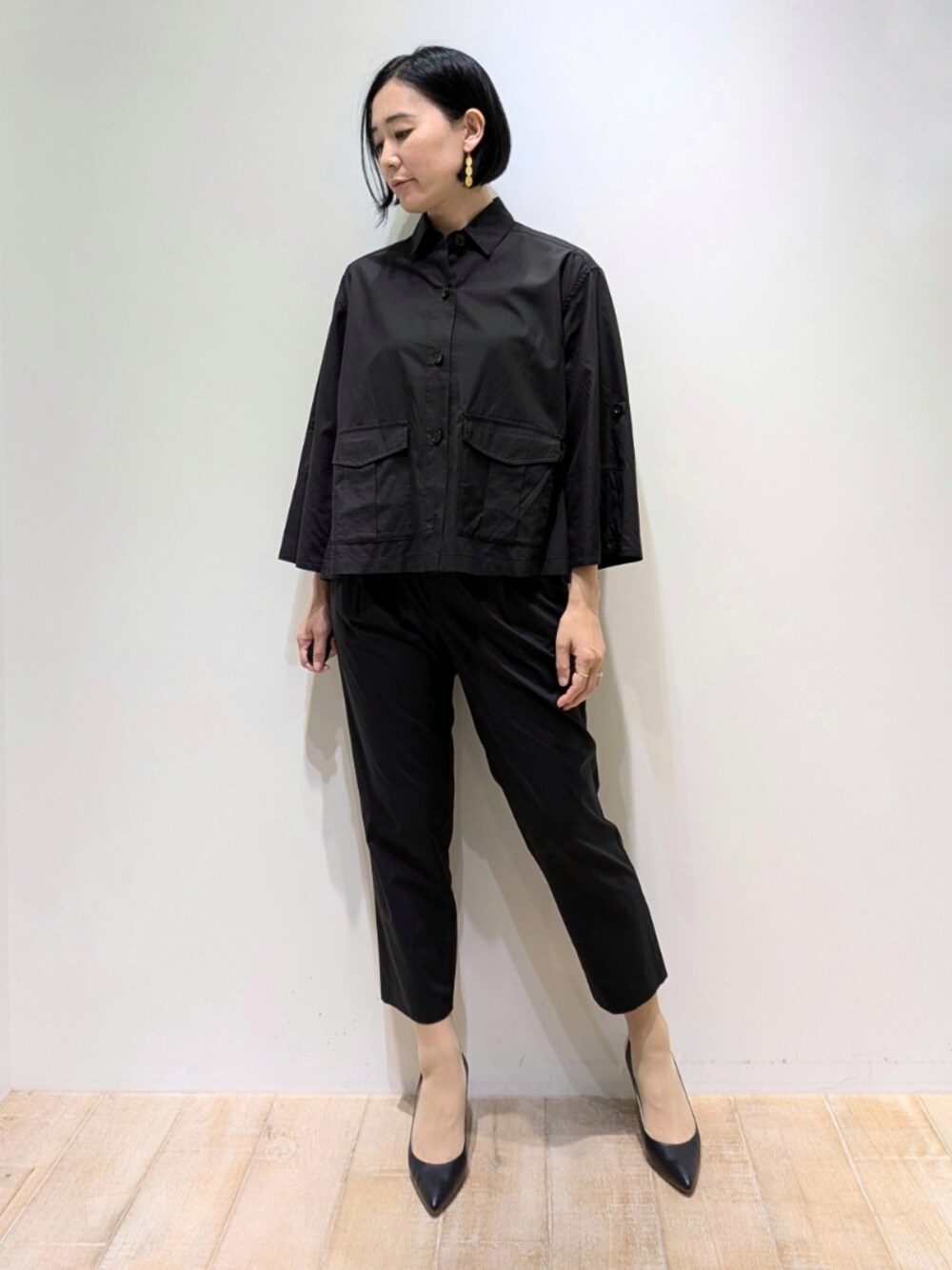 Chie(メゾン カリテ 新宿高島屋店)のシャツ/ブラウス「ダンプシャツブルゾン」を使ったコーディネート