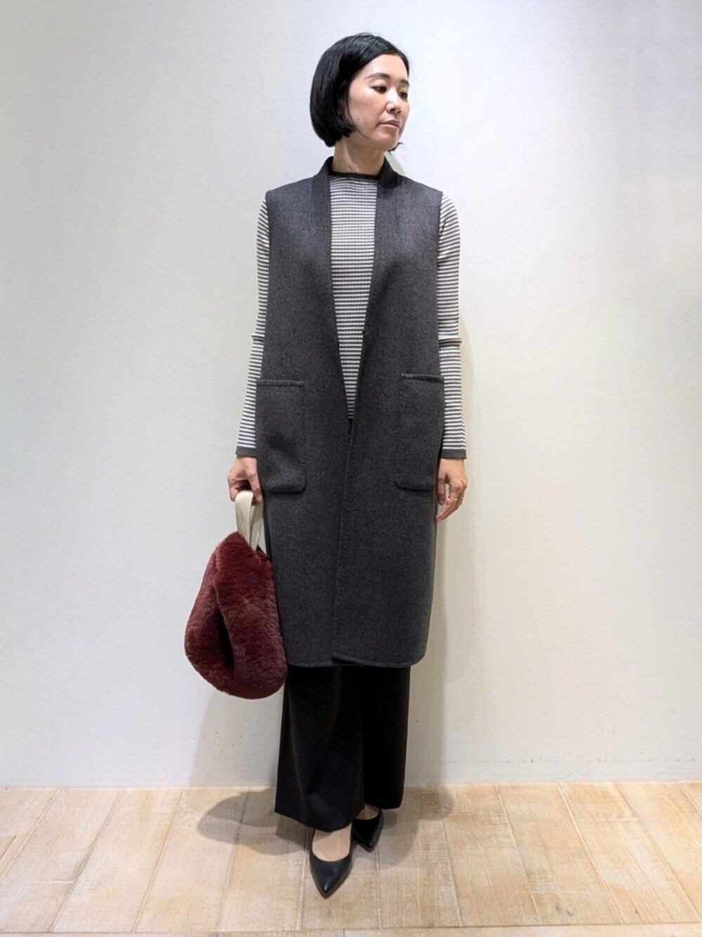 Chie(メゾン カリテ 新宿高島屋店)のベスト「ダブルフェイスジレ/ベスト」を使ったコーディネート
