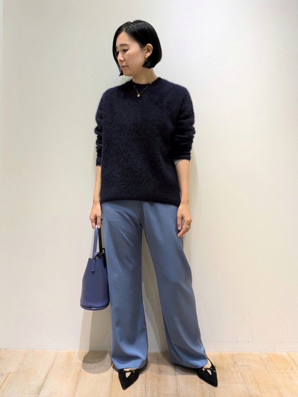 Chie(メゾン カリテ 新宿高島屋店)のニット/セーター「【素肌に溶け込むようなふんわり感】フォックスウールクルーネックニット」を使ったコーディネート