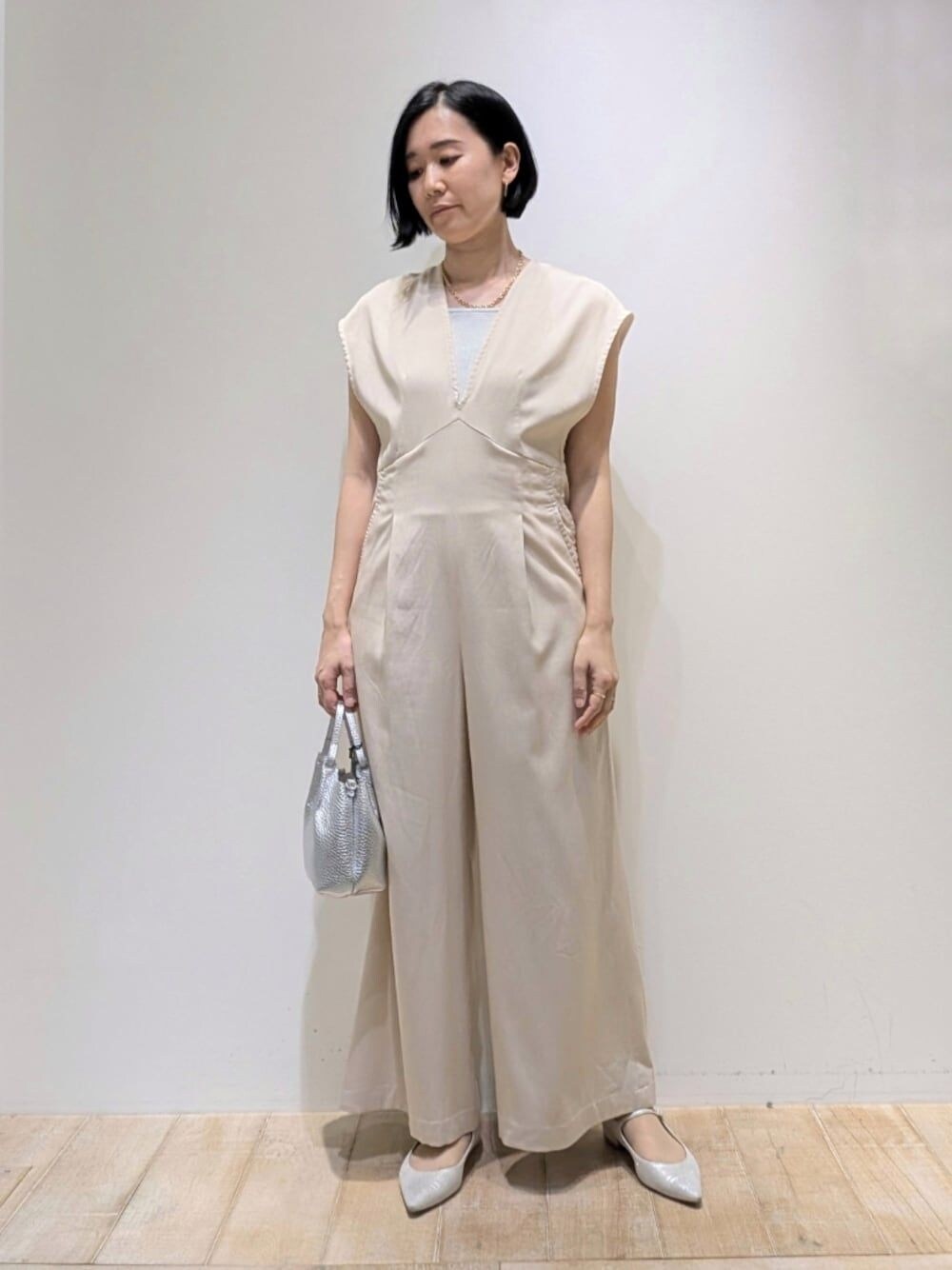 いつもご覧いただきありがとうございます! 上品なベージュカラーのオールインワン。 お仕事にも活躍しそうです!