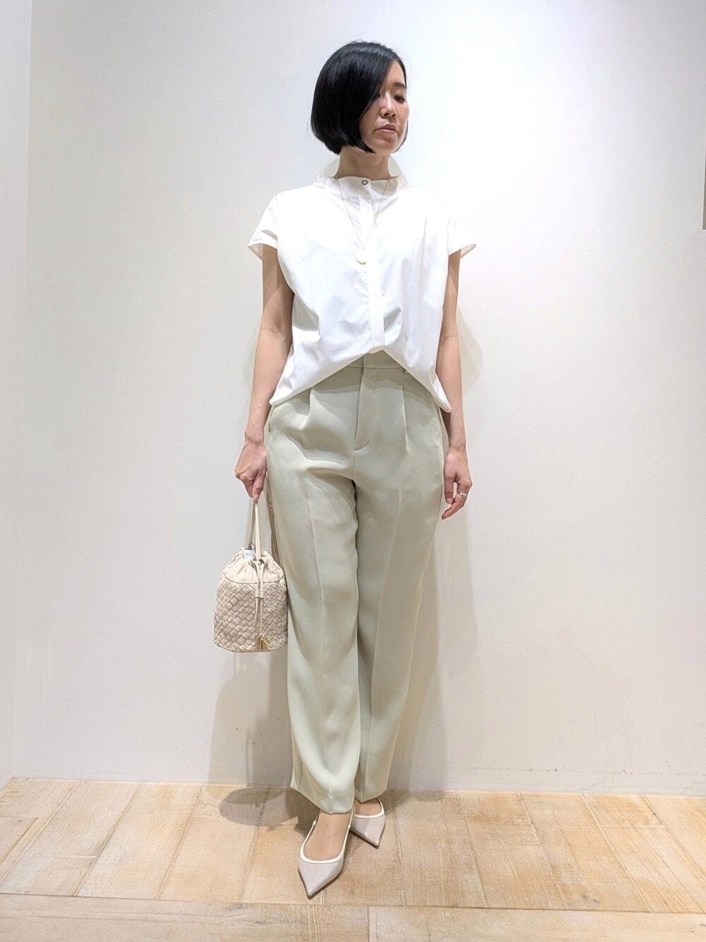 Chie(メゾン カリテ 新宿高島屋店)のスラックス「【セットアップ対応】トルコサテンストレートパンツ/オフィスカジュアル」を使ったコーディネート