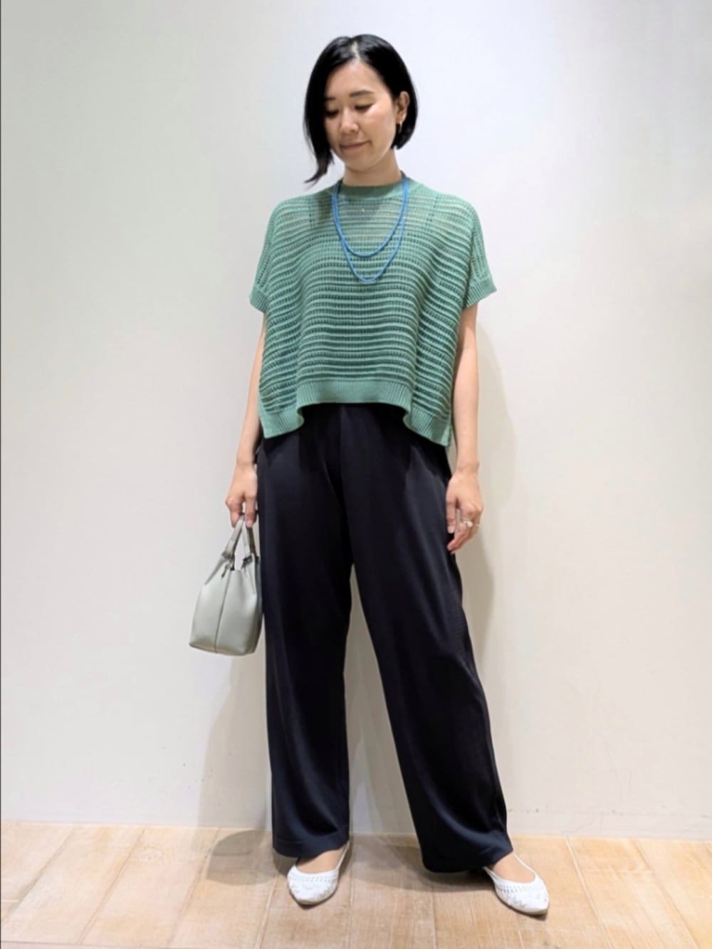 Chie(メゾン カリテ 新宿高島屋店)のニット/セーター「【大人の透け感】透かしガータースクエアニット/夏服/サマーニット」を使ったコーディネート