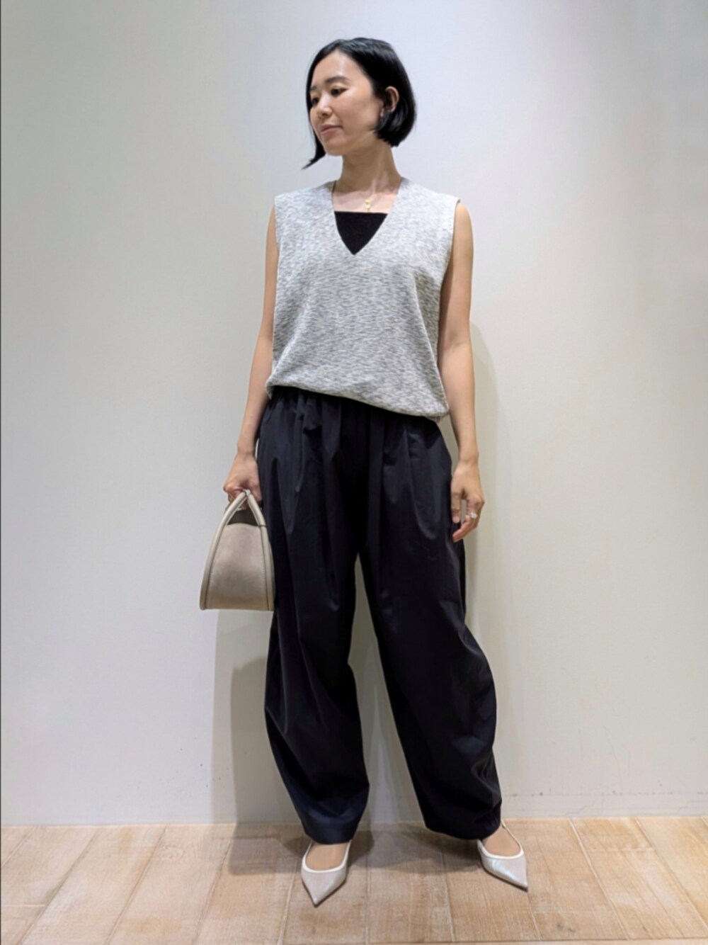 Chie(メゾン カリテ 新宿高島屋店)のベスト「カスリヤーン畦深Vニット/サマーニット/夏服」を使ったコーディネート
