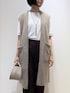 [プロフィール] 身長:164cm 骨格ウェーブ・ブルベ夏 普段サイズ:トップス38/ボトム38〜40 [qualite]フォックスカシミアロングジレ 着用サイズ:38 とても軽くてふわっとした上質な柔らかい着心地。コーディネートにプラスするだけで温かみのある秋冬コーデになります。大きなポケットがポイントでほっそりとしたシルエットでお召しいただけます。冬は防寒用にコートインしても◎ [qualite]プレミアムプライスT 着用サイズ:F やや長めの半袖丈で、程よい厚みのある素材感の Tシャツ。ジャケットインやワンピースインの他、しっかりした生地のため1枚でも活躍します。 [qualite]クールトリコットタックパンツ 着用サイズ:38 スイムウェアのようなストレッチ素材で一見ゴムに見えないですがウエストもぐるり一周ゴム仕様です。履くだけでヒヤッとする接触冷感&UVカットで真夏に最適なパンツです。腰回りゆったりの2タックパンツですが、裾がやや細くなっているテーパードシルエットです。 [qualite]アソートチェーンタッセルネックレス 着用サイズ:F タッセルに様々な細かいチェーンを数種類合わせたボリュームの出せるロングネックレス。留め金のマンテルは2カ所あるため、長短2パターン楽しめます。アンティーク調のマットなゴールドカラー。