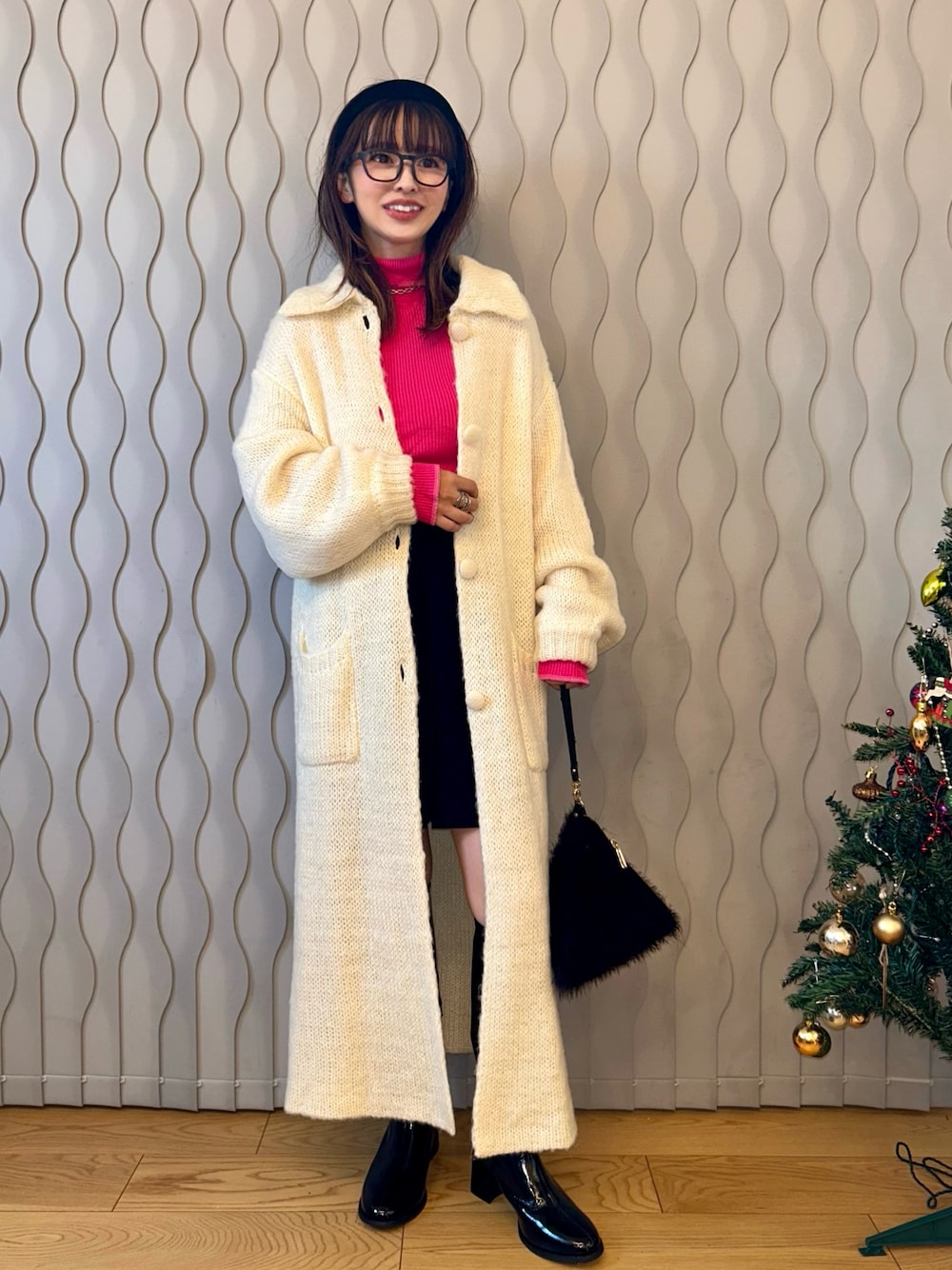 クリスマスに着たいコーデ🎅 ピンクのハイネックに ふわふわの⛄️ニットコート エナメルのロングブーツ 𝕝𝕟𝕤𝕥𝕒𝕘𝕣𝕒𝕞 ⇒@hama.chie
