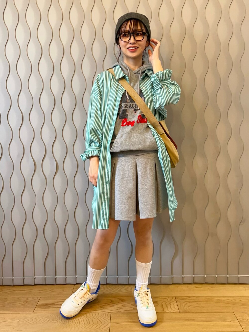 セットアップで着たスウェットに 春カラーなグリーンシャツを アウター代わりにしてみました🌸 お花見コーデにぴったり♡ 𝕝𝕟𝕤𝕥𝕒𝕘𝕣𝕒𝕞 ‣‣@hama.chie