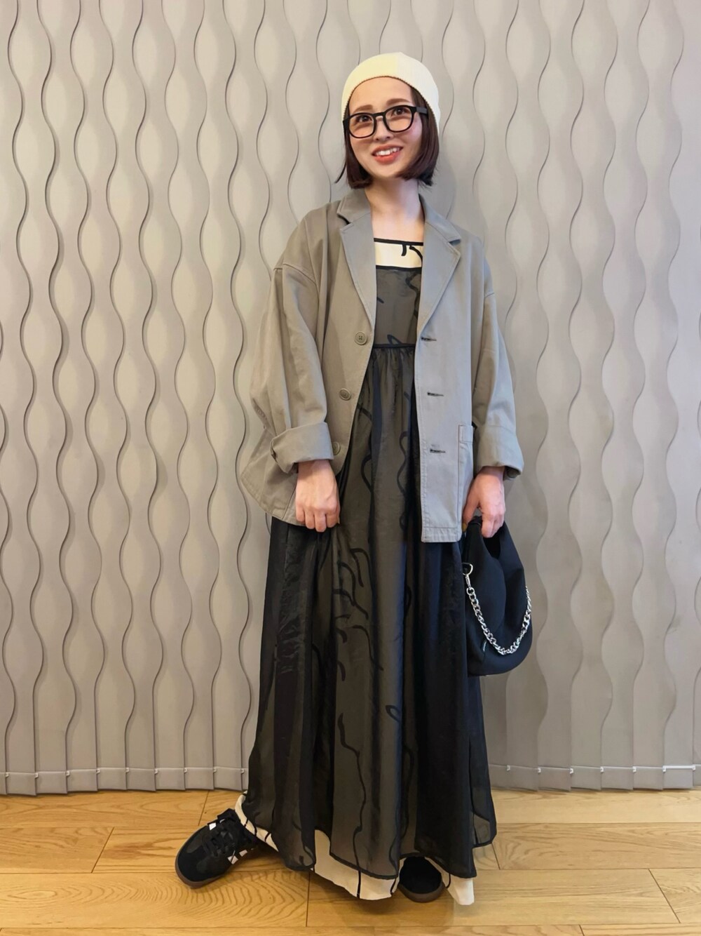 キャミソールワンピースをレイヤードしてみました🖤⋆͛*͛ 黒のチュールワンピからチラッとウェーブ柄がかわい(*´`) メンズライクなジャケットを羽織って 少しボーイッシュに🫶 𝕝𝕟𝕤𝕥𝕒𝕘𝕣𝕒𝕞 ‣‣@hama.chie