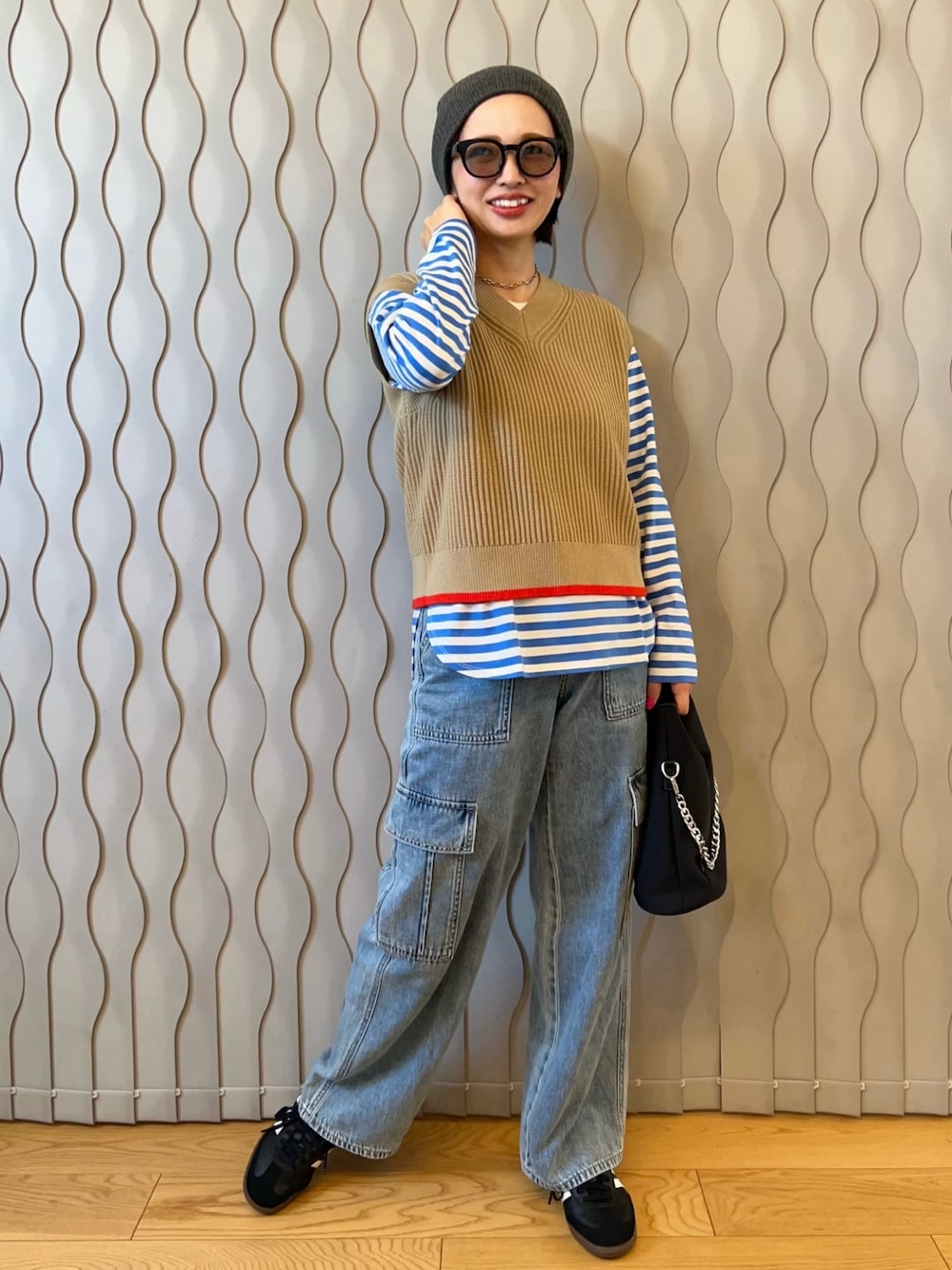 ブルーのボーダーにベストを♡ 普段しないカラーのレイヤード🦋🧸 春は色々カラーコーデ試したくなりますね🍀*゜ 𝕝𝕟𝕤𝕥𝕒𝕘𝕣𝕒𝕞 ‣‣@hama.chie