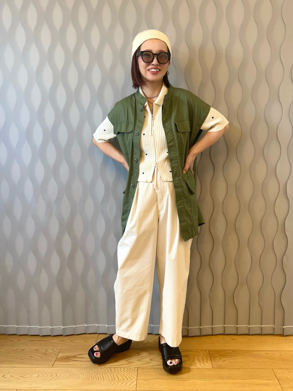 はまち(¨)♡のニットキャップ/ビーニー「プチプラリブビーニー」を使ったコーディネート