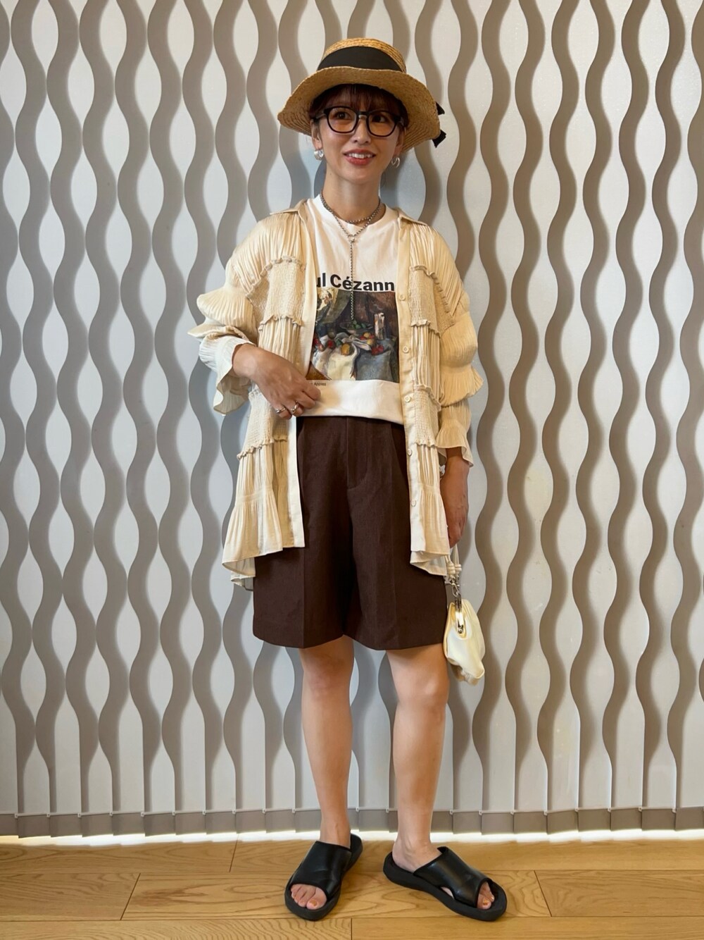 ショートパンツでアクティブコーデ⸜🫶⸝ ナチュラルカラーで統一すると大人っぽい雰囲気に🧸 サテン生地のシャツも大人コーデに欠かせない︎👍🏻 ̖́- 𝕝𝕟𝕤𝕥𝕒𝕘𝕣𝕒𝕞 ‣‣@hama.chie