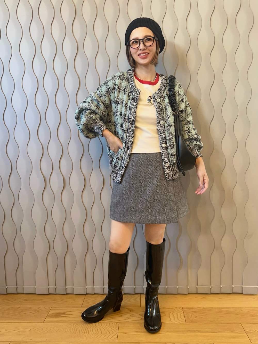 UNIQLOのツイードミニスカート♡ これ実は、インナーキュロットパンツがドッキングしてて、動き回るママでも安心なやつ🤣 足出すの、ためらう年齢なので長めのブーツであわせてみました♡ タイツあわせなら、たくさん履きたい🤤♡ 𝕝𝕟𝕤𝕥𝕒𝕘𝕣𝕒𝕞 ‣‣@hama.chie